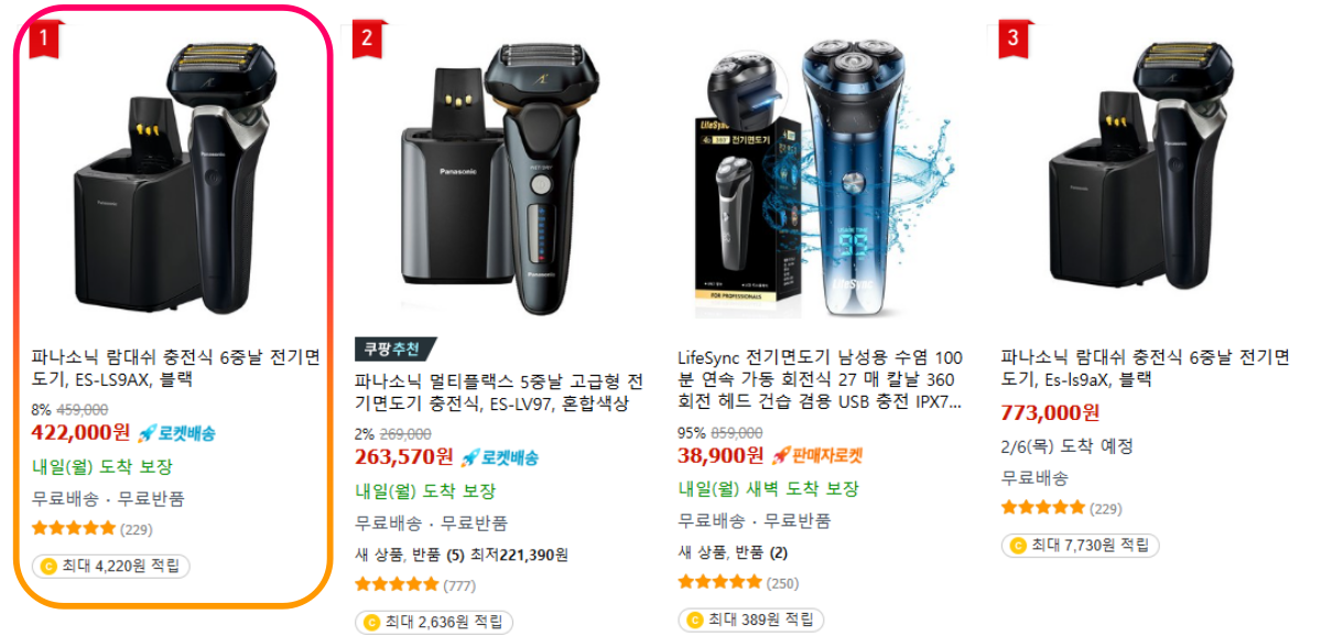 파나소닉 람대쉬 모델로 새로운 전기면도기 제품을 알아보니 가격이 ㄷㄷㄷ